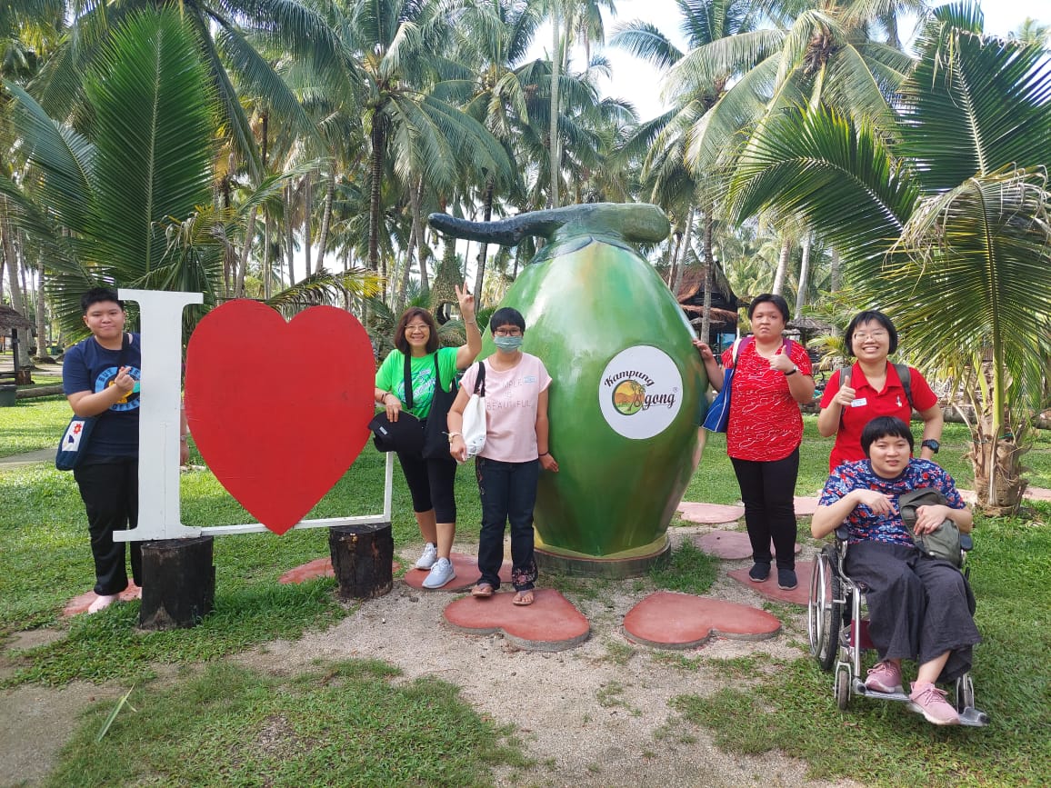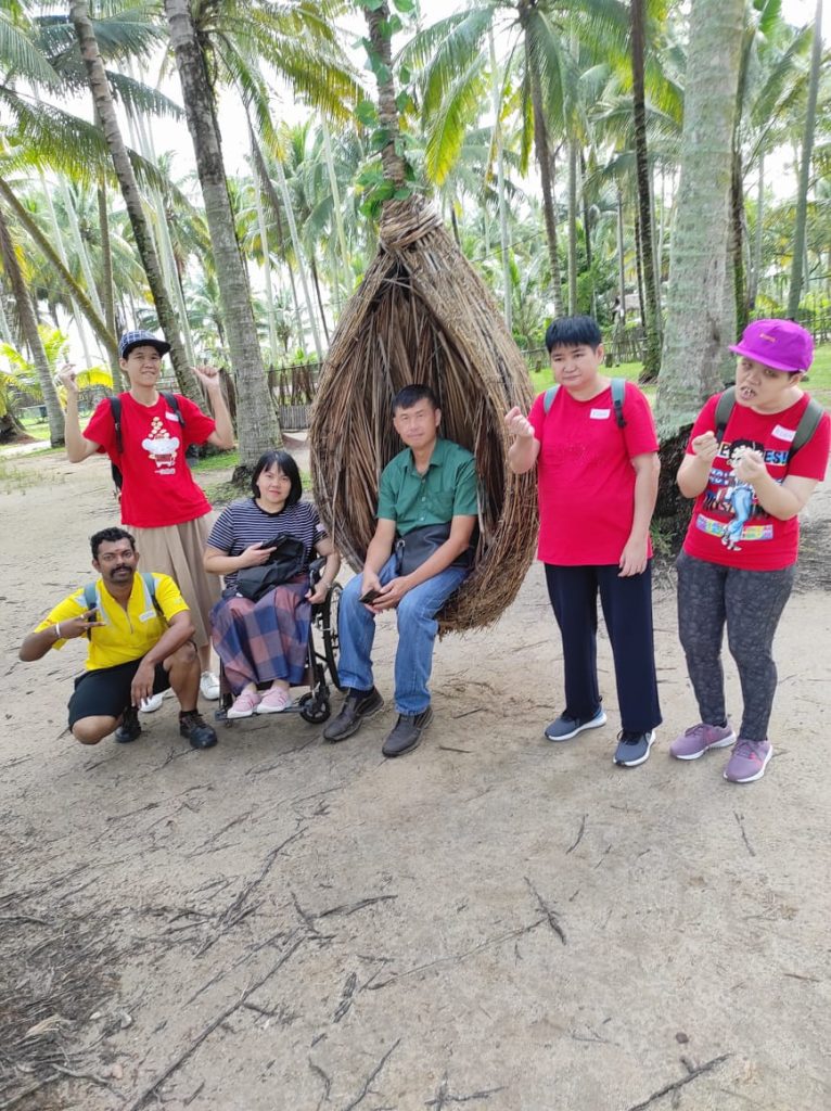 Eden organised for 50 people with disabilities to Kampung Agong and lunch at Lao Ya Che in Bukit Mertajam on 15 July 2023. The surroundings has various decorative props such as giant hanging birdnests, swings, paddy field sheds and kampung houses, etc. The atmosphere is peaceful with greenery scenery around. They had enjoyed and also experiencing a kampung life surround by coconut trees.
