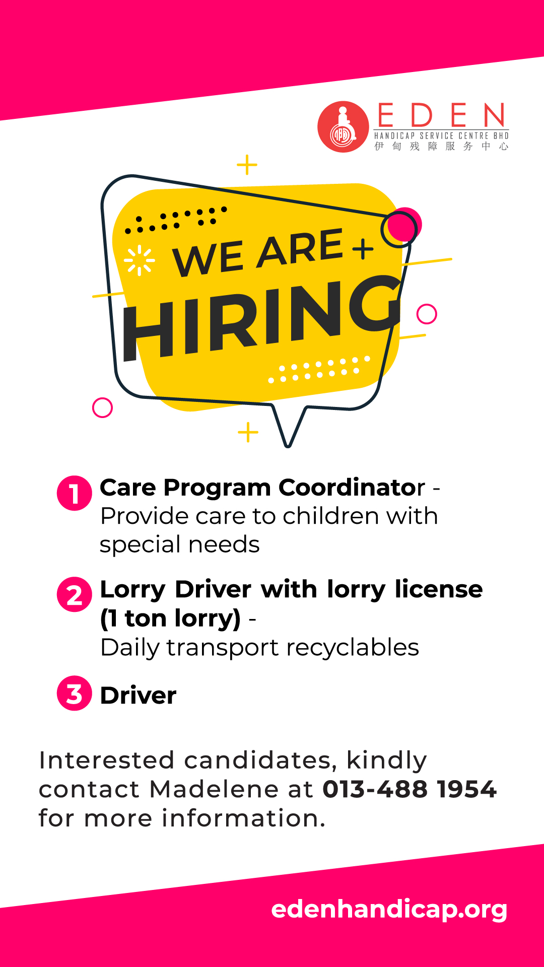 Eden Handicap Service Centre is seeking work for people with disabilities, in order to provide them with jobs which can be carried out at Eden’s sheltered workshop.