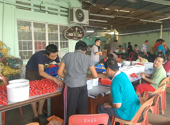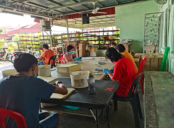 Our collaboration with Soroptimist International Penang gave birth to the Sheltered Workshop for intellectually-challenged women. The success of this collaboration has opened doors to intellectually-challenged women to step into an environment that is loving, friendly and filled with numerous opportunities for them to learn new things including character development, self confidence and simple vocational skills. Our aim is to first equip them with skills and empower them so that in due time many will be gainfully employed and live meaningful and independent lives.